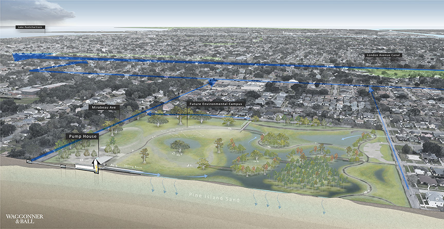 “The reliance on engineering systems and concrete has to be broken,” Waggonner says. “We have to let gravity and nature work. We have to let water be where it needs to be. Our solution is inherently natural.”