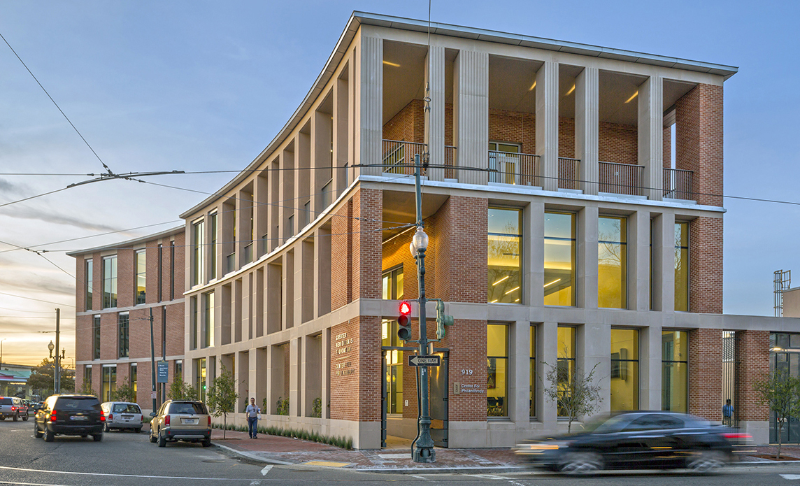 This new headquarters for a local philanthropic foundation heals a scar on an important public space. As an exercise in emulating the values of the nonprofit that calls it home, the building is transparent, welcoming, and expressed in a restrained form and vocabulary that respects its historic context.
