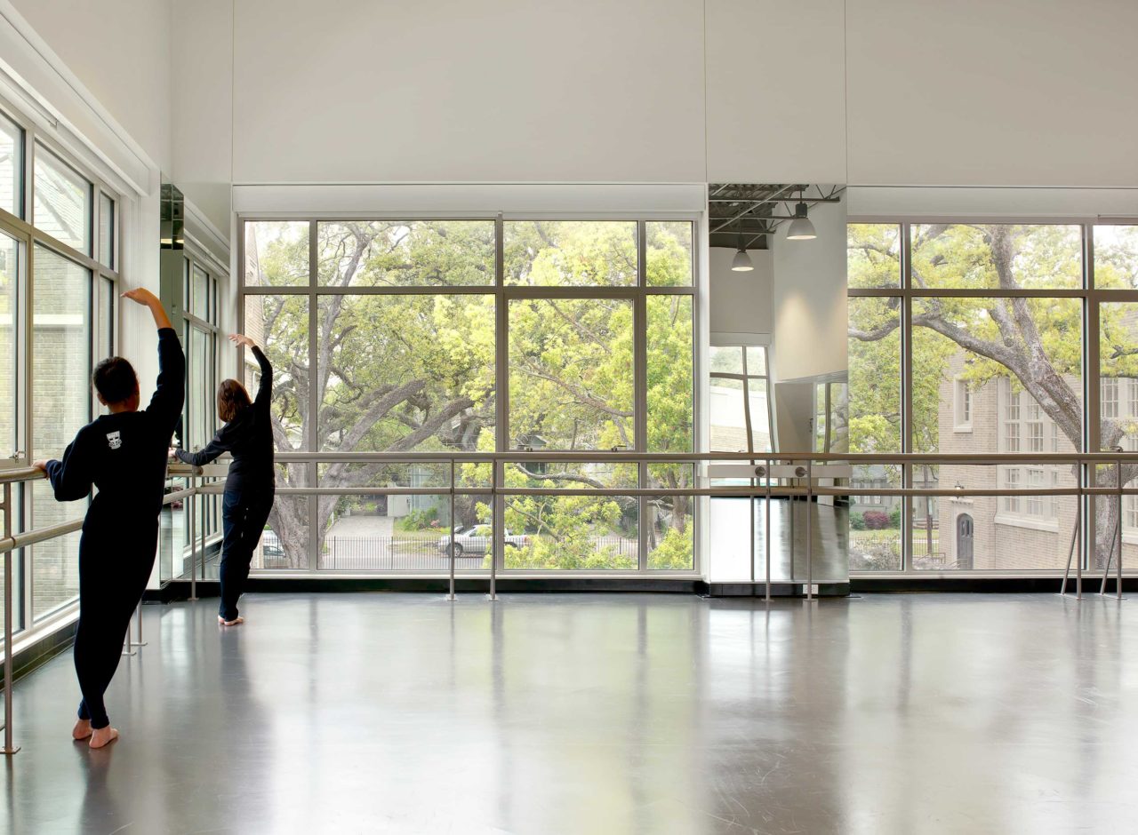 The south addition, named after Sister Marie McCloskey, houses a state-of- the-art fitness center on the ground floor with a dance and yoga studio on the second level. This new pavilion forms a new courtyard for the campus with the recently completed early childhood center and main gymnasium. The center also features cardio-fitness and training rooms, a conference room, a multi-media health classroom, and coach’s offices.